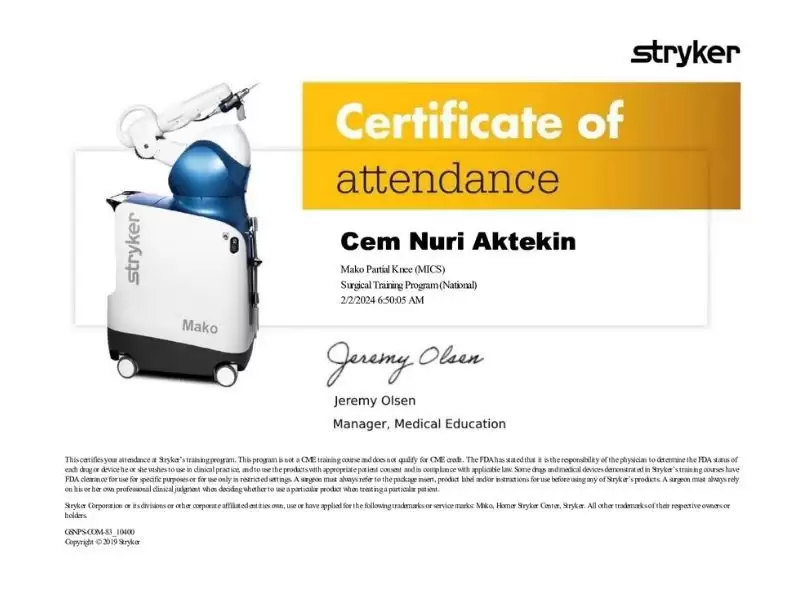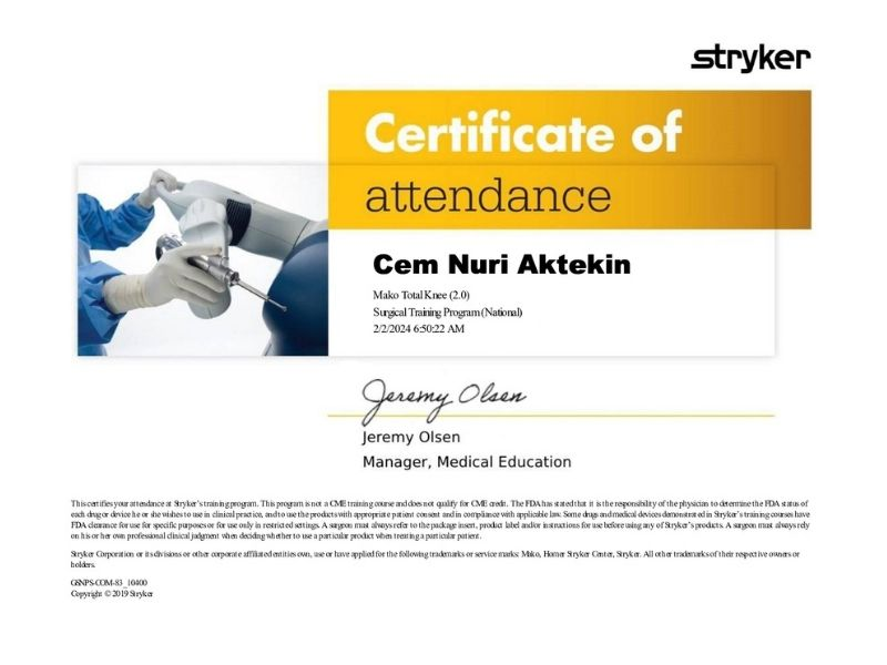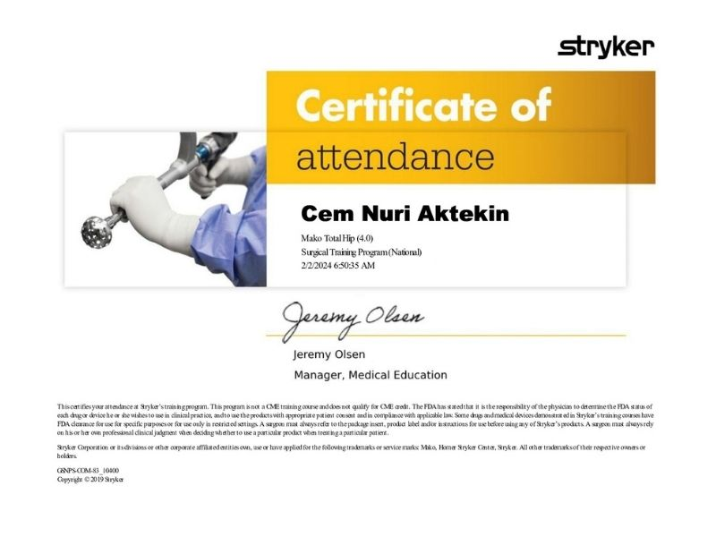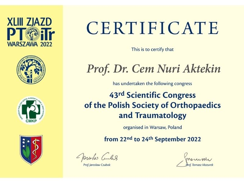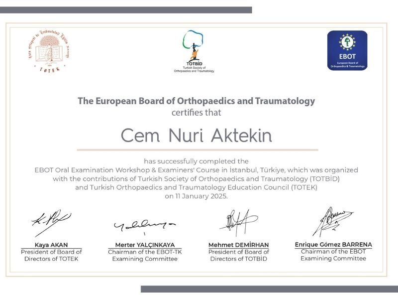 Prof. Dr. Cem Nuri Aktekin’in ortopedi ve travmatoloji alanındaki sertifikaları, mesleki eğitimleri ve uzmanlık birikimi bu sayfada yer alır.